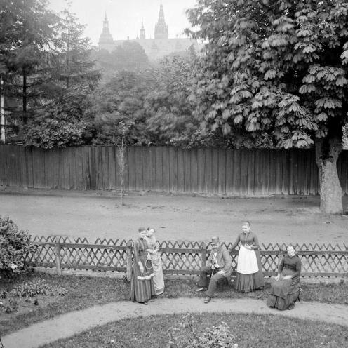 Et stort gruppefoto med 10 personer foran en ejendom findes på Det Kgl. Bibliotek. I Elfelts protokol kan man læse, at fotografiet er fra 1894 og der står blot ”Hartmann besøg i Frederiksborg”, men årstallet 1894 passer næppe.