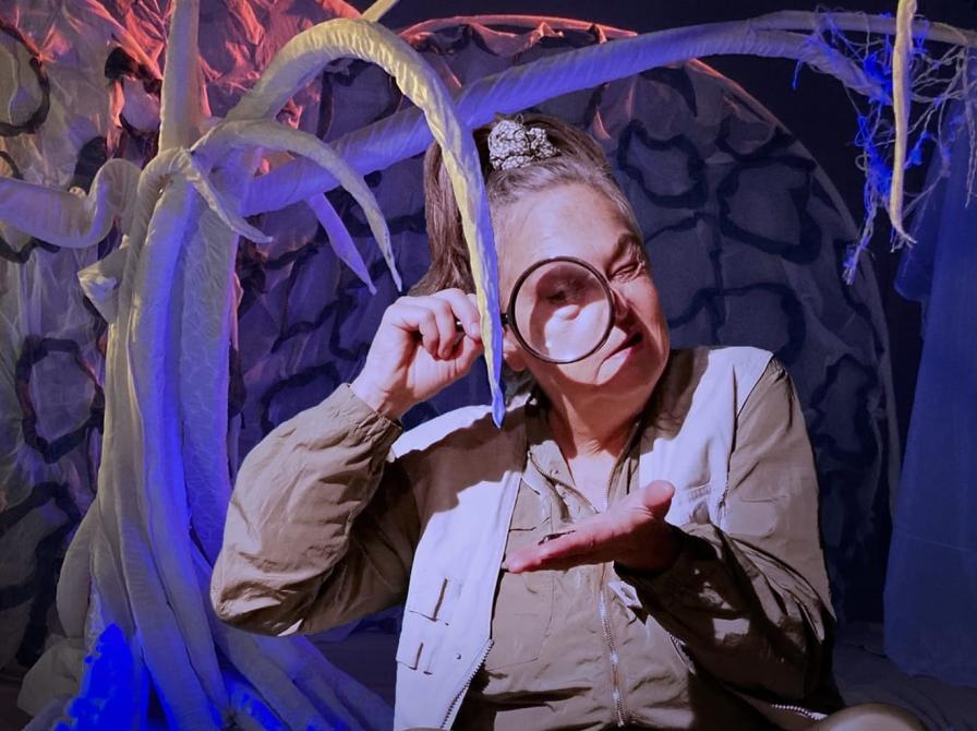 En utrolig, men sand historie hvor de sammen med publikum opdager og udforsker hvordan træerne snakker sammen og hvor vi får kendskab til hvordan svampe og hyfer er underverdens internet. En sanselig og poetisk forestilling med humor og eventyrmagi, hvor vi taler lige ind i den klimaproblematik vi alle er en del af.