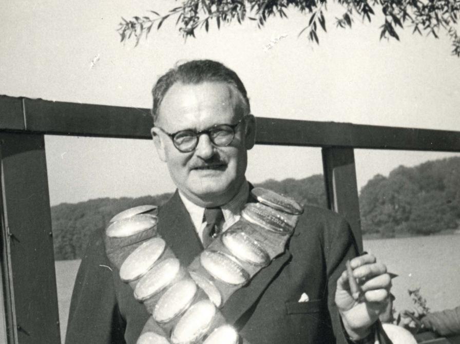 Urmager og guldsmed Carl Kern-Hansen deltog aktivt i foreningslivet i Hillerød lige fra han i 1907 bosatte sig i slotsbyen. Bl.a. var han medlem af Frederiksborg og Omegns Fugleskydningsselskab, og i 1942 blev han fuglekonge. Det foregik på grund af krigen på Hotel København, og ved den efterfølgende kåring og fest er Kern-Hansen fotograferet med Slotssøen som baggrund.